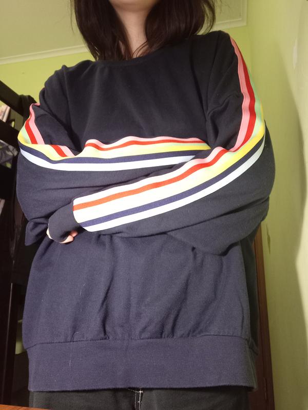 свитшот синий с разноцветными полосками оверсайз