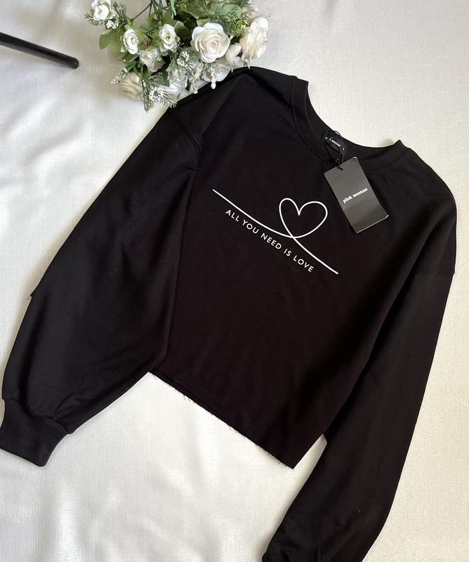 Черный укороченный свитшот с необработанным краем. Размер Л