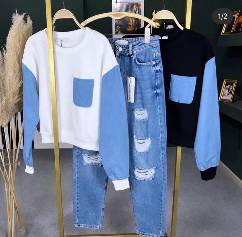 🔴🟠🔴🟠🔴🔴🔴 В наличии фото в живую Модель 0124 Кофта -батник теплый Ткань : три нить на флисе теплые Цвета:бело -голубой,черно -голубой Размер 42-44,46-48