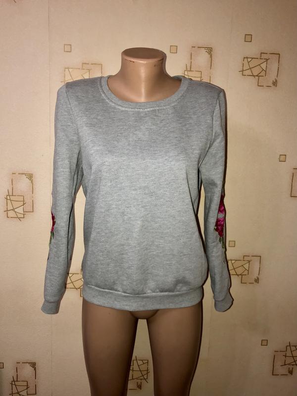 Без дефектов. Размер М. Замеры: по груди 52 см по бедрах де резинка 45 см тягнеться до 55 см плечи 38 см длина рукава 58 см длина свитшота 60 см