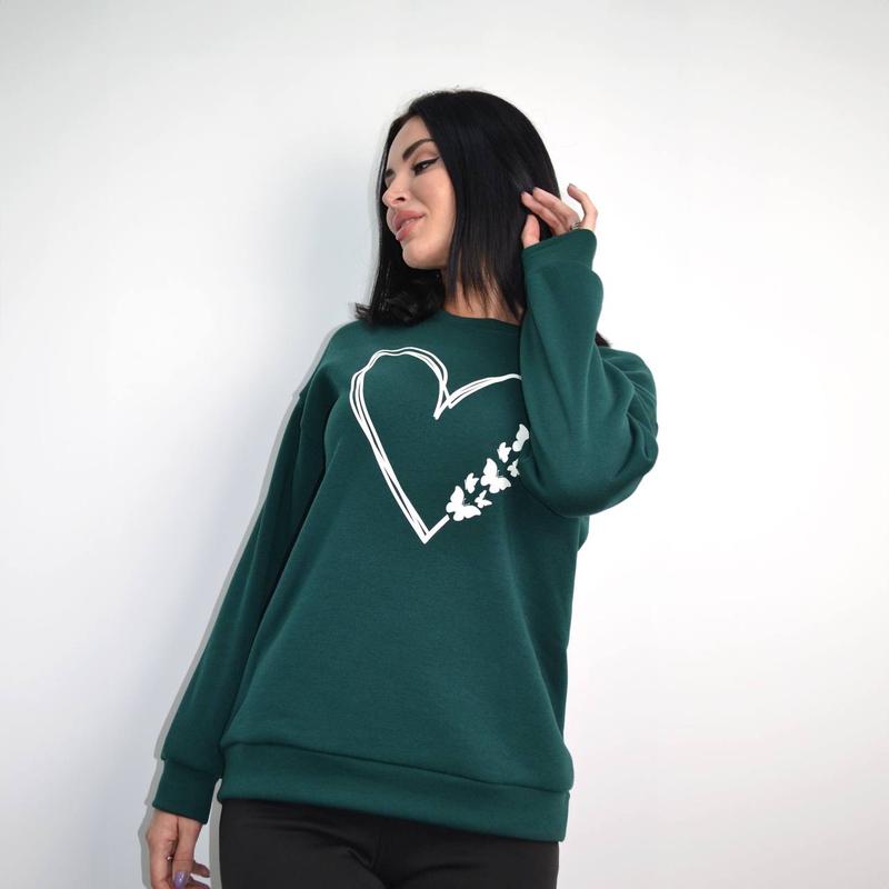 ТЕПЛА НОВИНКА ОТ САМОГО СЕРДЦА💜 Женский свитшот с накаткой "Heart" Арт: 4165 Цена 490 грн Материал: трехнитка на флисе ⠀ 📏Замеры: Длина свитшота: 67-69 см Длина рукава от горловины: 69-73 см ⠀ Размер: 42-44, 46-48, 50-52 ⠀ Цвет: темно-зеленый, электрик, темно-синий, графит, шоколадный F&G