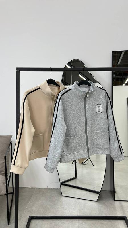 Бомбер Модель 994 Размер 42-46, 48-52 Ткань трехнет на флисе, Турция Цвет молоко и серый #лаванда
