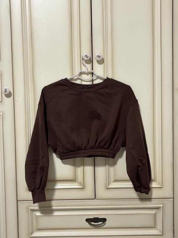 вкорочений світшот гарного коричневого кольору, знизу на резинці, по бірці S