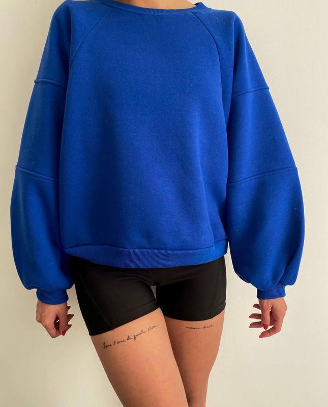 Якравый теплый свитшот на флисе с объемными рукавами 🔥