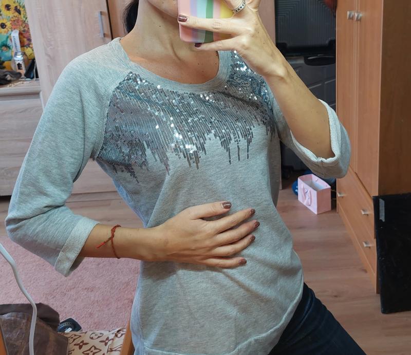 100% коттон состояние новой. качественные паетки. длина изделия 66 см,ширина в груди 52 см, талия 50 см, рукав укороченный 44 см.