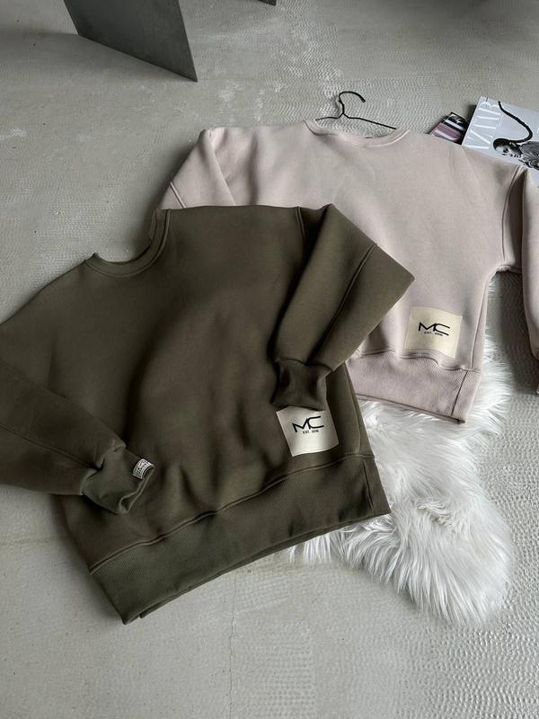 Арт 776-840 Цена 960 грн Свитшот 🪡Ткань: турецкая трехнить на флисе ПЕНЬЕ (мягкая, не кашлатится, не теряет цвет) манжеты из мела Кашкорсе и качественный накат 📏Размер: 42-46 🌈Цвет: беж, хаки