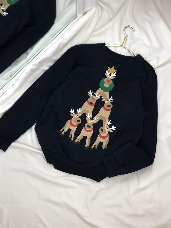 Синий свитшот с оленями🎄 В идеальном состоянии❗️ Размер указан Л, больше М По деталям в дырект💌