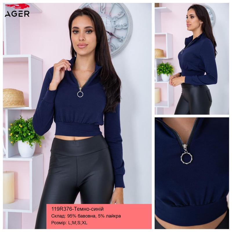 Укороченный женский свитшот на молнии темно-синего цвета Размеры S M L XL Производитель Украина Цена 350 гривен расчет при получении доставки по всей Украине.