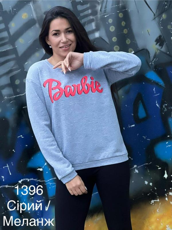 Стильный свитшот Barbie💝 🏷️Материал: трикотаж петля 🌈Цвет: серый ✅ Размеры: 1 (42-44) 2 (46-48) На модели размер 1 Параметры модели 87-74-94 Рост 169 см 💵Цена 210 грн🔥🔥🔥