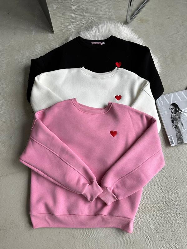 🤍Свитшот 💎Мод: 843 🪡Ткань: турецкая троехнитка на флисе ПЕНЬЕ (мягкая, не кашлатится, не теряет цвет), манжеты на горловине, рукавах на низу кофты - меловая кашкорсе и ВЫШИВКА 📏Размер: 42-46 универсальный 🌈Цвет: розовый, молоко, черный