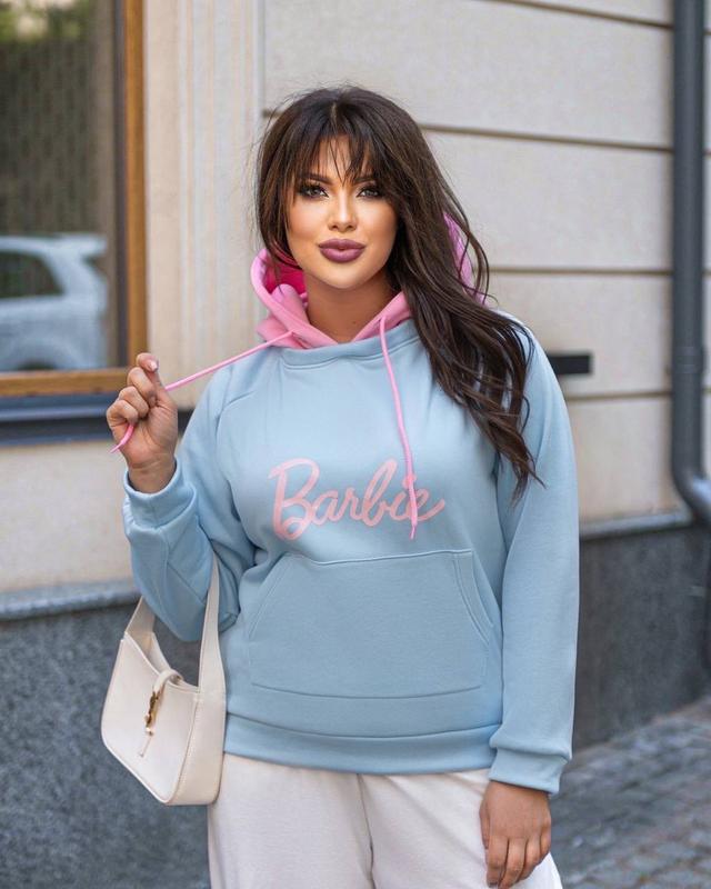 Свитшот №684/0203 Цена-800грн размер 42-46,48-52 тканина тринитка Цвета-розовый+желтый,голубой+розовый,белый+голубой Теплое худи, с двойным капюшоном, удобным карманом кенгуру. Стильно модно молодежно.