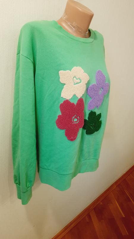 В идеальном состоянии оригинальный оверсайс свитшот на девушку 48р. Длина по спинке 61см, длина рукава с плечом 73см, ширина подмышками 61см, ширина низа 57см.
