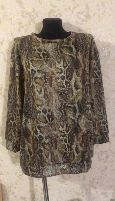 Трикотажная кофта со змеиным принтом. Объем по груди- 130 см. Спущенное плечо. Хорошо тянется. Размер: 3XL/4XL Тканина: трикотаж двонитка Цвет: как на последнем фото