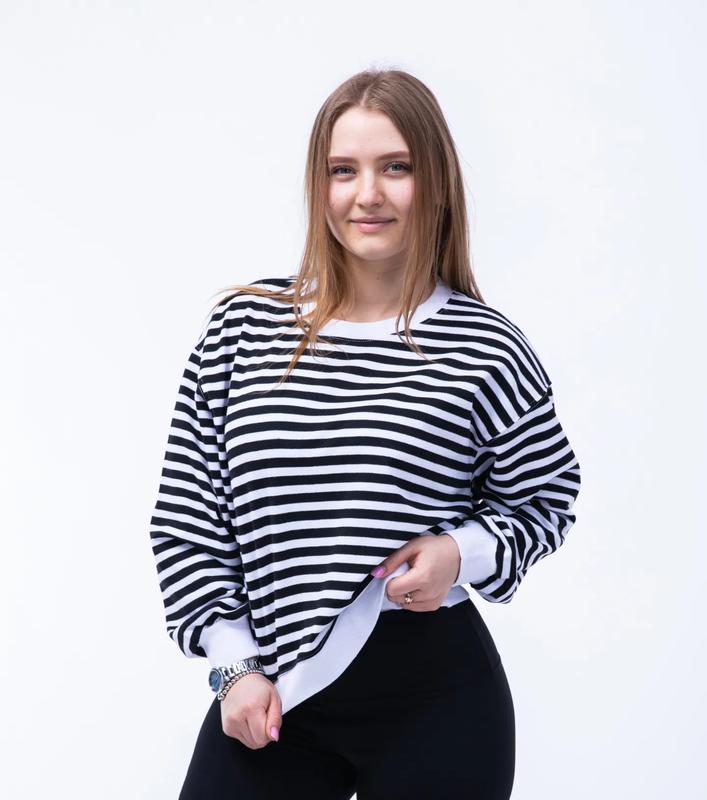 Свитшот в полоску 😍 S ПОГ 54 см Длина 52 см М ПОГ 56 см Длина 52 см L ПОГ 58 см Длина 53 см Ткань трехнить Турция ( 95% cotton, 5% elastan) Цвет черный, капучино, красный, зеленый Цена 650 грн. Оверсайз свитшот 800 грн.
