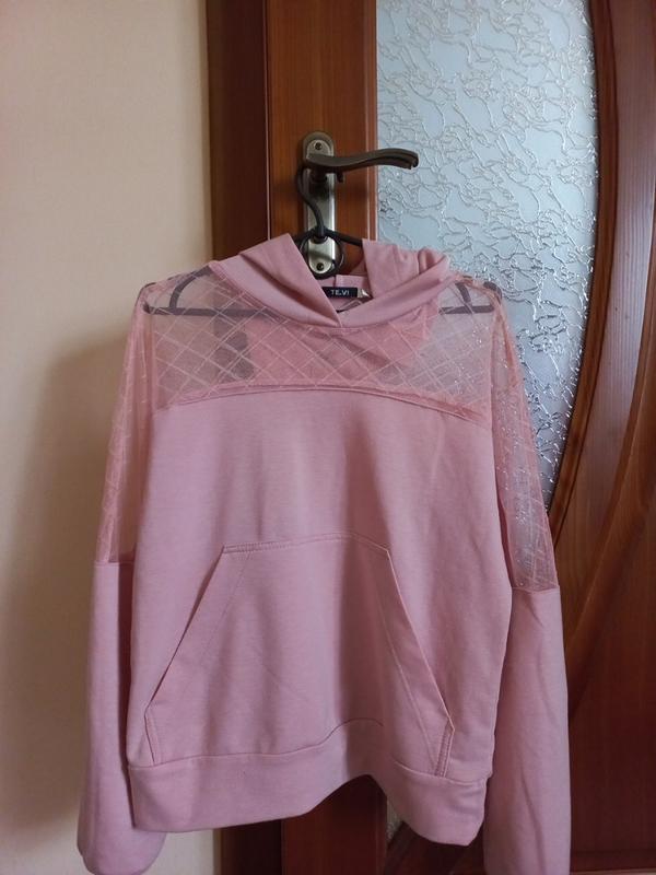 батник нежно- розового цвета, очаровывается на теле,мает сеточку на плечах, размер с