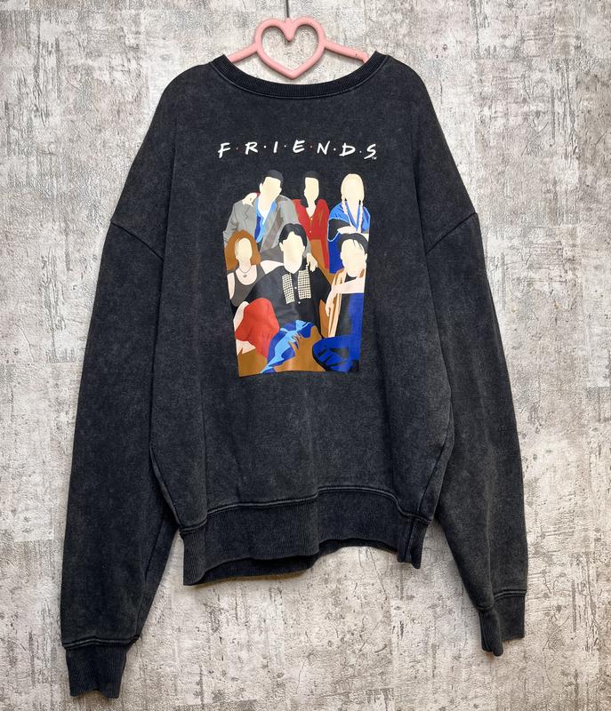 Свитшот графитового цвета с эффектом потертости и изображением друзей Одето на М-L Краще на XS-M Больше одежды в профиле