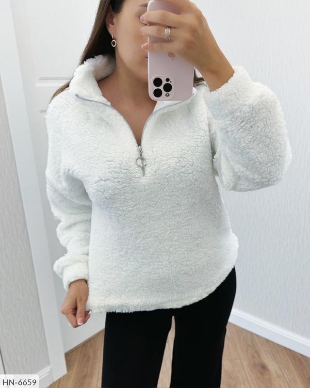 Світшот HN-6673 Ціна: 650 грн. Розміри: 48-52 Тканина хутро тедді Туреччина Виробник україна Теплий трендовий світшот з високим коміром на застібці Низ та рукава на манжетах Кольори молоко, трава, малина, мокко та чорний
