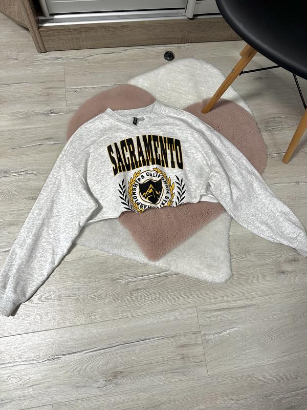 укороченный свитшот от H&M. состояние идеально. 80% каттон. есть начес. длина- 37см; ширина под руками- 62см; длина рукава- 75см