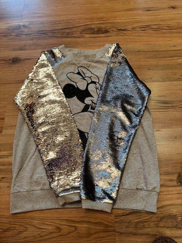 Свитшот,цвет рукавов с паэтками меняется,мины паус принт блестящий