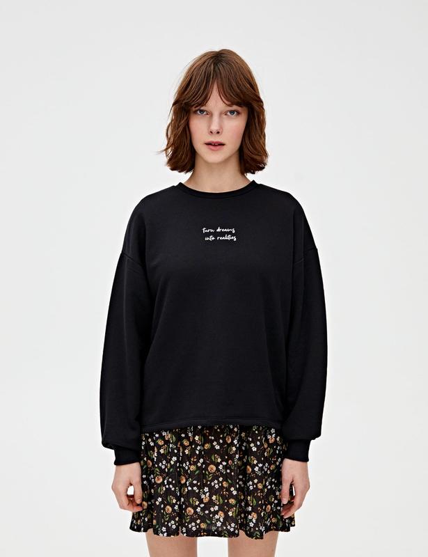 Хлопковый свитшот Pull & Bear черного цвета – состояние идеальное, цвет насыщенный не выстиран. Размер производителя S, состав 55 хлопок 45 полиэстр