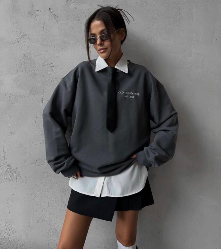 Свитшот old money декорирован вышивкой, стильный и модный. Ткань: дорогая двунитка + рибана. Цвета: серый, молочный. Размер: oversize. ОГ: до 128 см. Рукав: 70см. Длина: 74см.