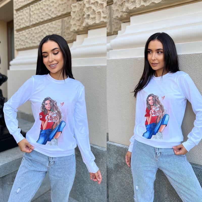 💎НОВИНКА💎 Свитшот Мод. 788/799 новая Цена: 465 грн Фото в живу 📷 Размер: 42-44; 46-48; 50-52 Ткань : микродайвинг рисунок печать по ткани Замеры: 42-44 Обхват груди 82-94cm Длина кофты-60см Длина рукава -60 см 46-48: ОГ 94-98; 50-52; ОГ 100-114 см код20-1955(ТКар)