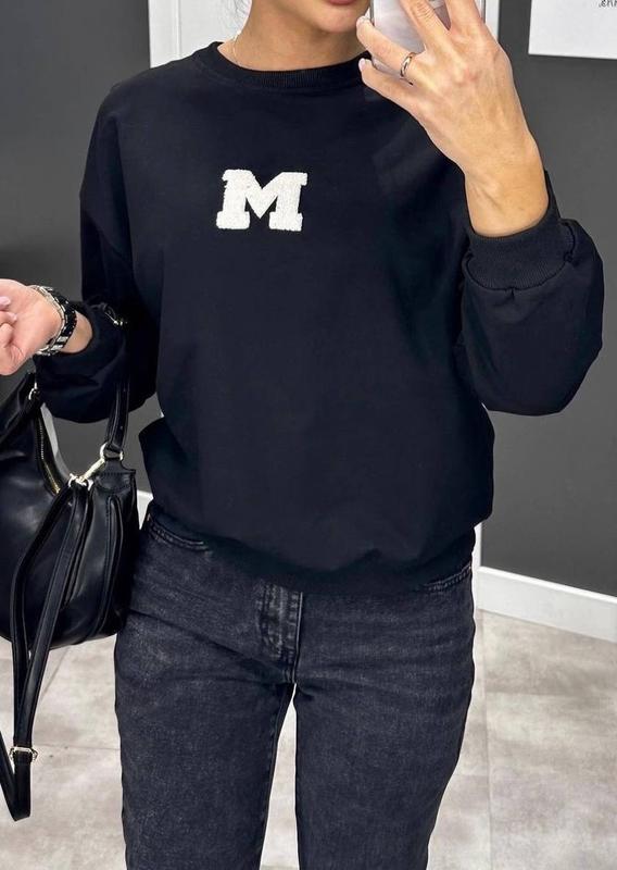 Новинка 💜💜💜 Модель 0167 Свитшот Тканина : двух нитка (буква М накат гарної якості) Колір : чорний , білий Розмір універсальний