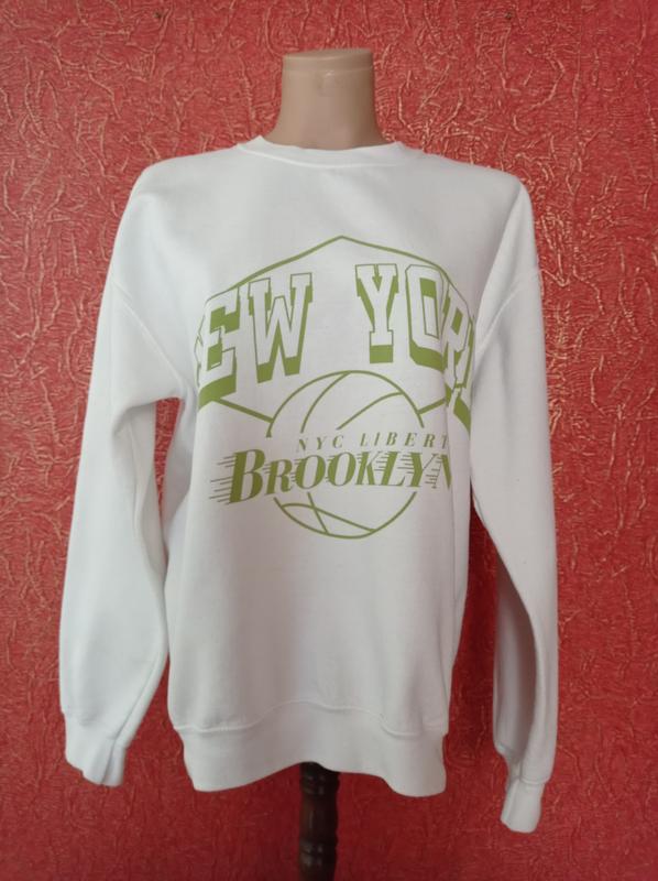 Котоновий світшот в гарному стані, унісекс. Вказаний розмір М, орієнтуйтеся на заміри довжина 66, напівобхват грудей 56, рукав від горловини 77.