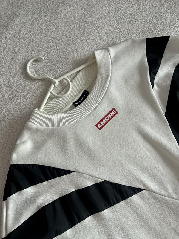 Белоснежный свитшот с черными вставками Очень стильный