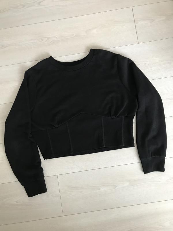 Объемный свитшот с приталенным поясом в рубчик. Состояние новой вещи. Пог 60 тянется до 68, Пот 48 до 60, длина 51, длина рукава 63, плечи 47 до 54.