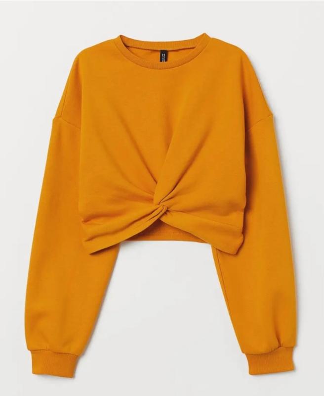 укороченный топ на флисе с акцентными узлом Утепленный, яркого горчичного цвета размер С - М