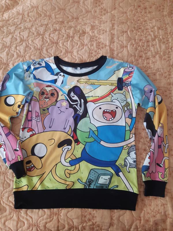 тонкий яскравий світшот з героями "час пригод", довжина 56, плече 14, рукав 52, ширина 42, пог 46