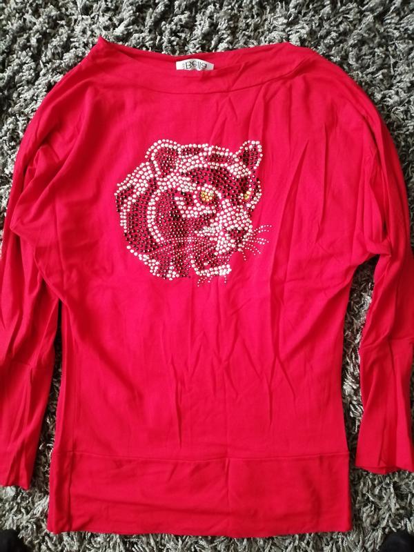 Очень красивый, красный цвет, камушки держатся крепко, не отпадают. Замеры по запросу. Подойдет на размеры 44, 46, возможно и 48. Состав: 90 вискоза, 10 лайкоа. Производство Турция.