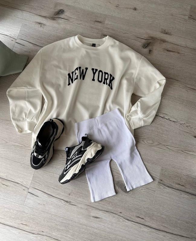 🔸Свитшот «NY» ▪️Модель: 1531 ▪️Ткань: турецкая двухнить (без утепления) ▪️Размер: 42-46 и 48-50 ▪️Цвет: молочный, черный Супер качество 💬Удлиненный весенний свитшот OVERSIZE с трендовой надписью NEW YORK🔝 Манжеты с основной ломтике. Качественная накатка. Замеры: 42-46 / 48-50 ОГ 112 см / 120 см Длина 72 см / 72 см Рукав от ворота 75 см