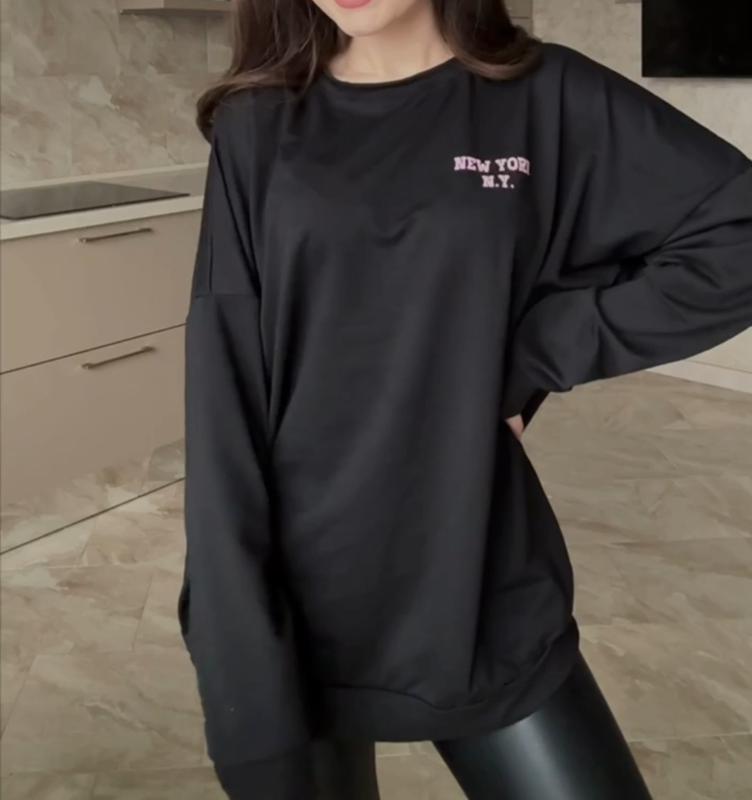 Весенний удлиненный свитшот OVERSIZE с трендовой надписью. Манжеты с основной ломтике. Качественная накатка. Без утепления, отличное качество. Ткань: качественная турецкая двухнить. Размеры: 42-46, 48-50. Цвета: белый, черный, барби. Замеры: 42-46 / 48-50 ОГ 110 см / 120 см Длина 72 см / 72 см Рукав от ворота 75 см