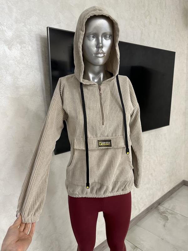 Классный вельветовый свитшот в отличном состоянии. Размер указан 164, отлично подходит на xs-s. Замеры: длина 60см, пог 50см, рукав от горла 62см, ширина по низу 34см.