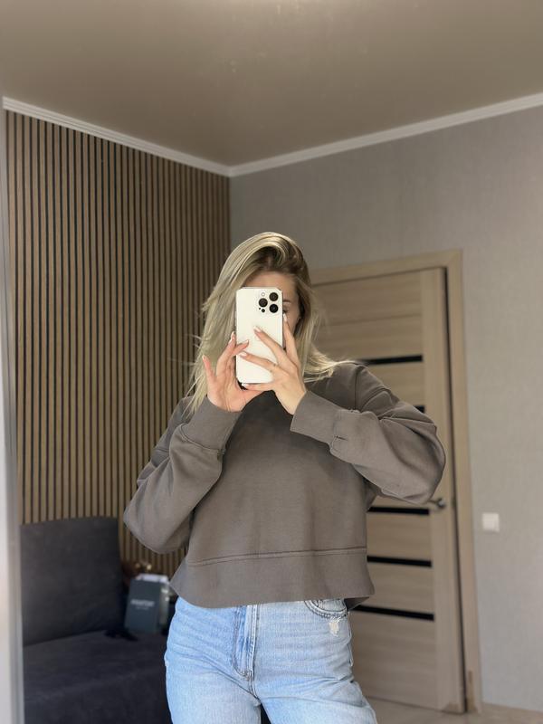 Укороченый худи с капюшоном коричневого цвета на флисе. Отличное качество, одевала пару раз