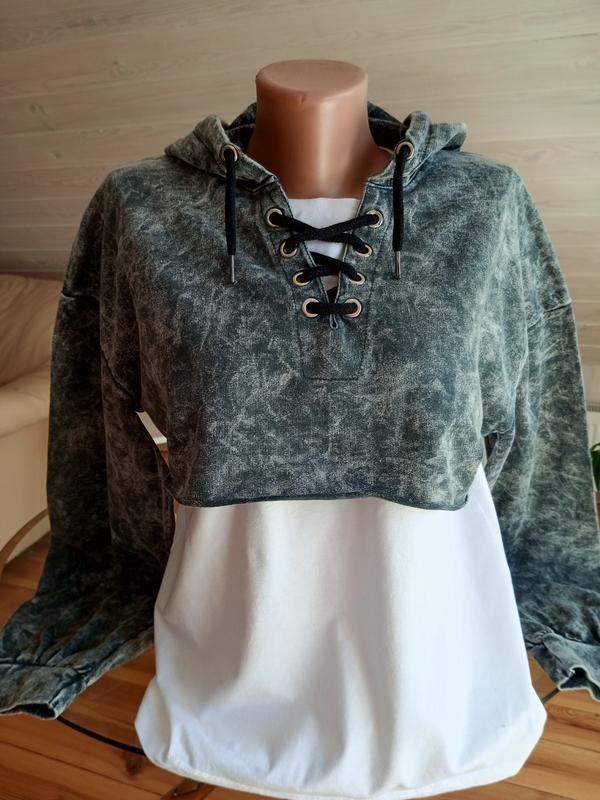 Свитшот на шнуровке рукав широкий на манжете длина 33 об г 56 низ 55 рукав 56