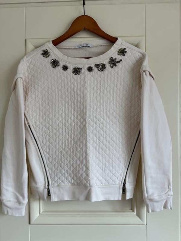 Світшот оверсайз молочного кольору з декорованими елементами та декоративними застібками. Є фото виробу із зворотньої сторони. Без утеплення, ідеально на весну , осінь, прохолодні вечори влітку .