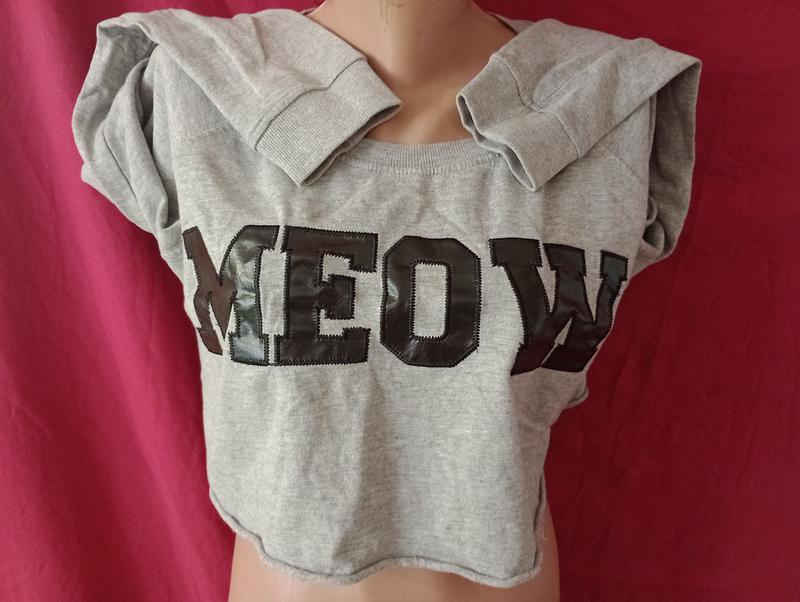 Короткий укороченный свитшот топ с длинным рукавом с надписью мяу хлопок кофта короткий