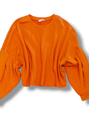 Свитшот H&M оверсайз кроя. Размер М. Ткань на ощупь, как мягкий неопрен. Цвет оранжевый. Есть нюанс (на посл.фото)