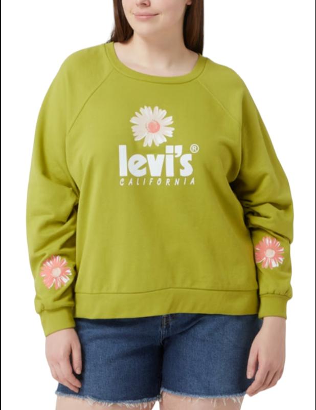 Толстовка Levi's® Plus изготовлена из смесового хлопка и имеет свободный крой. Модель имеет круглый вырез, рукава реглан и логотип. Материал и уход Основной материал 1 :60 % хлопок ,40 % полиэстер Ребро :60 % хлопок ,40 % полиэстер Инструкции по уходу Обычный цикл стирки 30°. Не отбеливать Сушка с пониженной термической нагрузкой Гладить умеренно горячим Никакой химической чистки Этот свитшот своим винтажным силуэтом вызывает ностальгию. Завершите образ джинсами или шортами с завышенной талией, и готово. Удобный свитшот С графическим изображением спереди. Для спортивного студенческого образа просто добавьте джинсы. Американские женские размеры plus size обозначаются в виде 1X, 2X и т.д. Наименьший из них соответствует международному XXL. пог 65 см , рукав реглан от горловины 76 см , по нижнему шву рукав 51 см , по резинке снизу 55 см , 57 см , длина по середине спины 54 см