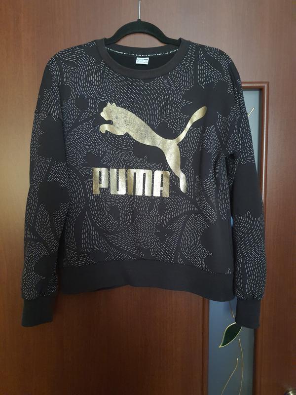 Класнючий жіночий світшот фірми Puma. Стан дуже гарний. Трішки втрачен колір на манжетах, логотип трішки потерся. Розмір XS, але підійде і на S. Виміри дивіться на фото.
