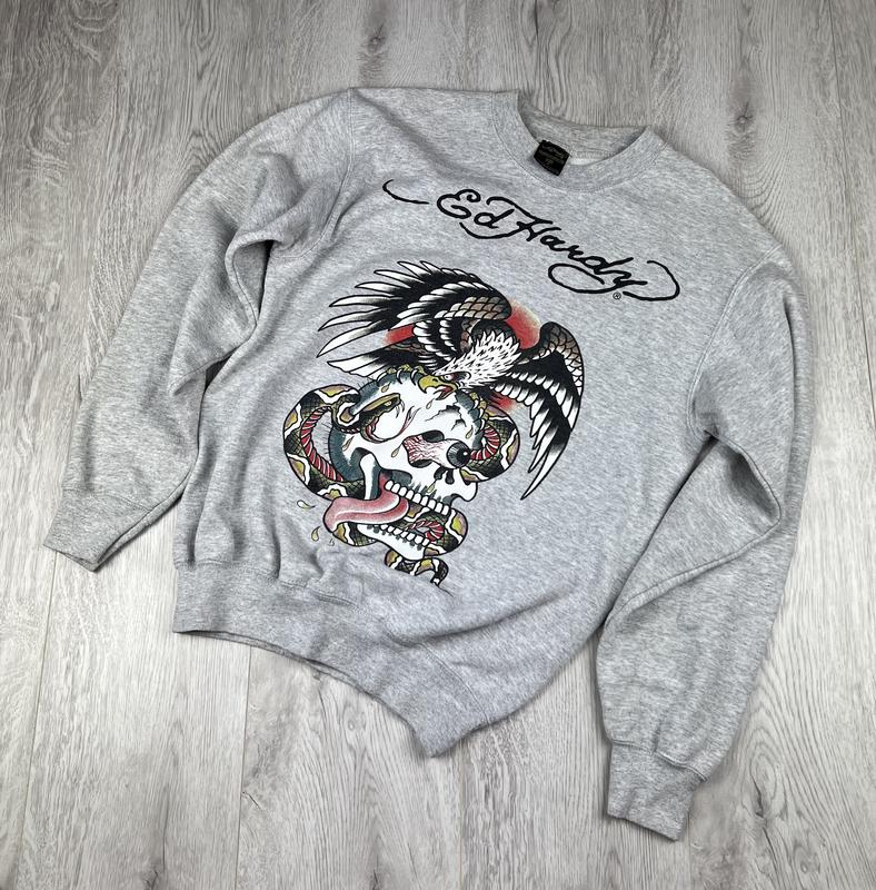 Кофта Ed Hardy S розмір Стан - як на фото,9/10 Заміри: Плечі 45 Рукав від плеча 56 Підмишки 47 Довжина по молнії 56 Продаю виключно оригінал ! Відправляю НОВОЮ ПОШТОЮ наложкою по мінімальній передплаті 150 грн (або ж оформляйте безпечну доставку - підтверджу відразу як буду в мережі) Продаю більше 5-ти років, якщо потрібно скину відгуки клієнтів (більше 1000 штук) За детальною інформацією писати в приватні повідомлення