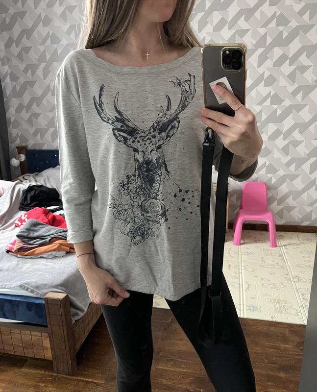 Жіноча кофта з оленем від F&F. Розмір - 14 (європ. 42). Довжина від плеча до низу - 62см. Півобхват грудей - 53см. Довжина рукава - 43см. Дуже хороший стан.