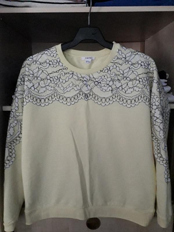 Свитшот с кружевом, очень красивый,цвет лимон размер М,можно 46-50