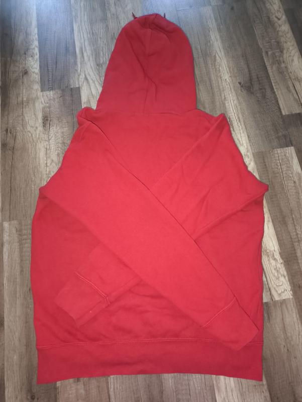 Теплая красная женская кофта. С карманом по середине.На флисе. Имеет манжеты на рукавах и капюшон на завязках. Размер S. Длина 56см. Ширина 46см. Длина рукава 57см Ширина манжету 9см. Длина капюшона 29см. Резинка по низу 39см. Состав 100% хлопок. Цвет красный.