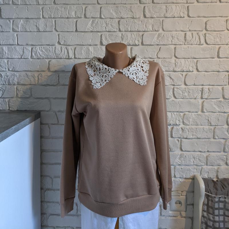 бежевый свитшот с сетевым ог -100см бедра 100см длина - 64см рукав -56см