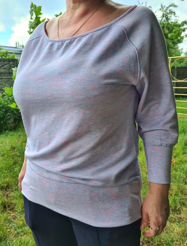 Кофта с рукавом 3/4 удлиненная Размер указан М, по факту подходит на L Состав: 63% полиэстер, 32% вискоза, 5% эластан Длина: 68 см Длина рукава: 54 см ПОГ: 56 см ПОБ: 51 см