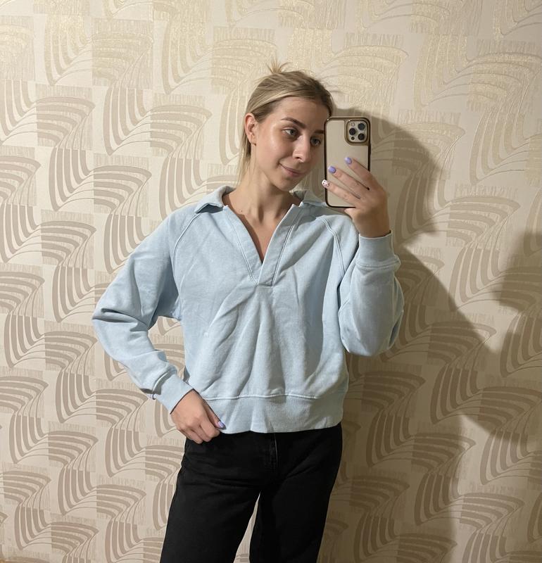 Блакитний світшот, має воротник та виріз спереду, присутній фліс 👕